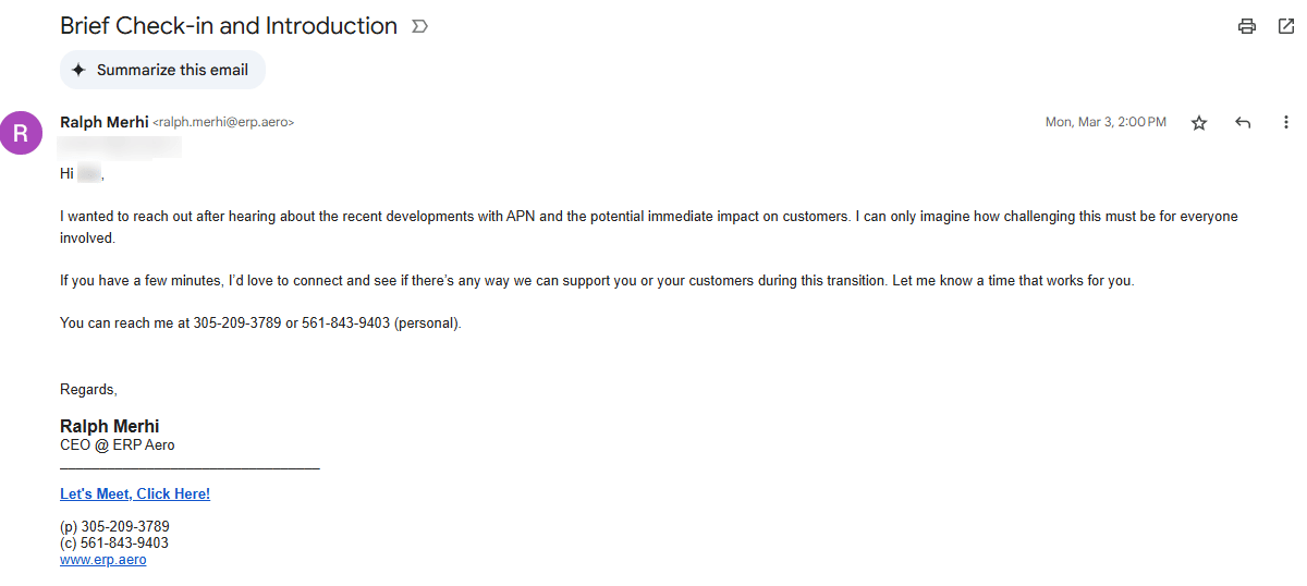 For weeks, we at ERP.Aero made good-faith efforts to engage APN—not to take shots, not to rush in, but to collaborate, offer help, and explore paths forward for their customers. At first, there was openness. Then, there was silence.